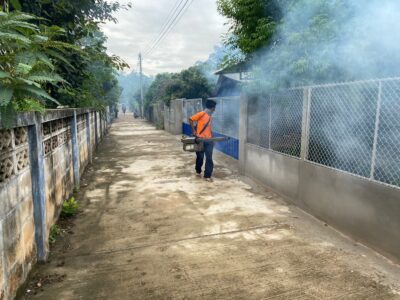 กิจกรรมรณรงค์ป้องกันและควบคุมโรคไข้เลือดออก ประจำปี 2566 โดยมีกิจกรรมหลักที่สำคัญ คือ 1.ปรับปรุงสิ่งแวดล้อม ทำลายแหล่งเพาะพันธุ์ลูกน้ำยุงลาย 2.พ่นหมอกควันกำจัดยุงตัวเต็มวัย 3.ใส่ทรายอะเบทกำจัดลูกน้ำ 4.ใส่สารเคมีกำจัดลูกน้ำ 5.เฝ้าระวังป้องกันอย่างต่อเนื่องให้สุขศึกษา ประชาสัมพันธ์สร้างความตระหนักรู้ให้ประชาชนในการดูแลป้องกันตนเองให้ปลอดภัยจากโรคไข้เลือดออก ณ บ้านหนองบัวคำ หมู่ที่ 10 ตำบลแม่ตืน อำเภอลี้ จังหวัดลำพูน Post published:26 กรกฎาคม 2023 Post category:ข่าวประชาสัมพันธ์ / ข่าวประชาสัมพันธ์ แชร์เลย : You Might Also Like รับมอบจักรยานจาก ตัวแทนศรีวิชัย พัฒนาในการสนับสนุนเป็นของรางวัล แก่เด็กและเยาวชนที่มาร่วมกิจกรรมในงานวันเด็กแห่งชาติ ประจำปี 2566 13 มกราคม 2023 จัดรถพยาบาลพร้อมเจ้าหน้าที่กู้ชีพออกตรวจสอบเมื่อได้รับแจ้งมีผู้ป่วยขอความช่วยเหลือ บ้านไร่ หมู่ที่ 2 21 มีนาคม 2023 จัดรถพยาบาลพร้อมเจ้าหน้าที่กู้ชีพออกตรวจสอบเมื่อได้รับแจ้งมีผู้ป่วยขอความช่วยเหลือบ้านแม่เทยสามัคคี หมู่ที่ 13 26 เมษายน 2023 ลงพื้นที่สำรวจถนนเชื่อมหมู่บ้านในเขตพื้นที่องค์การบริหารส่วนตำบลเวียงแก้ว ตำบลแม่ตืน อำเภอลี้ จังหวัดลำพูน เพื่อแก้ไขปัญหาความเดือดร้อนให้แก่ราษฎร 5 มกราคม 2024