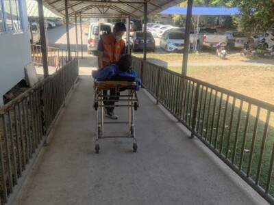 จัดรถพยาบาลพร้อมเจ้าหน้าที่กู้ชีพออกตรวจสอบเมื่อได้รับแจ้งมีผู้ป่วยขอความช่วยเหลือ บ้านแม่เทยพัฒนา หมู่ที่ 14 21 กรกฎาคม 2023