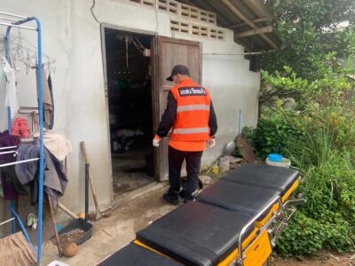 เจ้าหน้าที่ทำการประเมินสัญญานชีพเบื้องต้น ณ จุดเกิดเหตุ