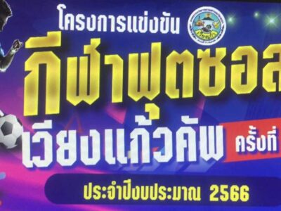 ด้วย องค์การบริหารส่วนตำบลเวียงแก้ว ได้จัดโครงการแข่งขันกีฬาฟุตซอลเวียงแก้วคัพ ครั้งที่ 3 ประจำปีงบประมาณ 2566 ระหว่างวันที่ 20-29 มีนาคม 2566 ณ สนามกีฬาองค์การบริหารส่วนตำบลเวียงแก้ว Post published:20 มีนาคม 2023 Post category:ข่าวประชาสัมพันธ์ / ข่าวประชาสัมพันธ์ แชร์เลย : You Might Also Like ตรวจสอบติดตามโครงการงานเครื่องจักรกลกองช่างทำการซ่อมแซมถนนพร้อมวางท่อระบายน้ำ ข้ามลำห้วยแม่แนต 1 พฤศจิกายน 2022 ลงพื้นที่สำรวจฝายบ้านแม่แนต ที่ได้รับความเสียหายจากเหตุอุทกภัย บ้านแม่แนตหมู่ที่ 8 ตำบลแม่ตืน อำเภอลี้ จังหวัดลำพูน 2 ตุลาคม 2023 ลงพื้นที่ซ่อมแซมถนนเพื่อการเกษตร สายทางห้วยเกี๋ยง บ้านแม่เทยสามัคคี หมู่ที่ 13 ตำบลแม่ตืน อำเภอลี้ จังหวัดลำพูน 28 สิงหาคม 2023 เข้ารับการตรวจเพื่อขอรับใบรับรองความพิการ ณ โรงพยาบาลลี้ เพื่อใช้ประกอบในการขอรับบัตรประจำตัวผู้พิการ จำนวน 2 ราย 13 มีนาคม 2024