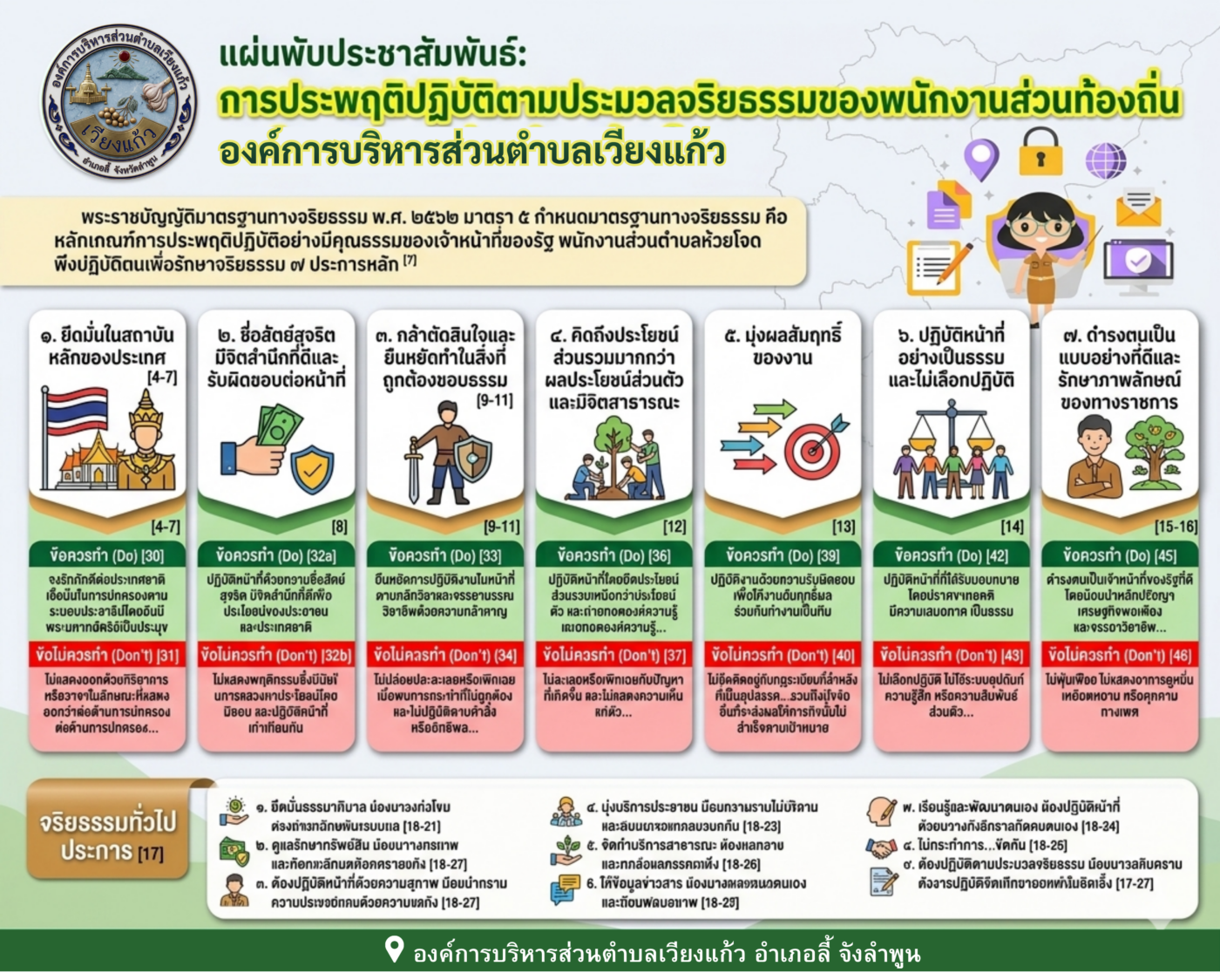 ประชาสัมพันธ์ การประพฤติปฏิบัติตามประมวลจริยธรรมของพนักงานส่วนท้องถิ่น องค์การบริหารส่วนตำบลเวียงแก้ว