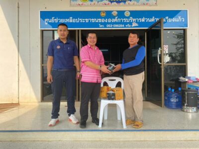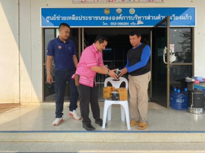 นายธนาธิป อุต๊ะมา นายกองค์การบริหารส่วนตำบลเวียงแก้ว และงานไฟฟ้าและประปา กองช่าง อบต.เวียงแก้ว มอบยูนิตย์ลำโพงฮอร์น จำนวน 2 ตัว ให้กับสมาชิกองค์การบริหารส่วนตำบลเวียงแก้ว บ้านสันป่าสัก หมู่ที่ 5 ตำบลแม่ตืน อำเภอลี้ จังหวัดลำพูน เพื่อเเก้ไขปัญหาความเดือดร้อนให้เเก่ประชาชน